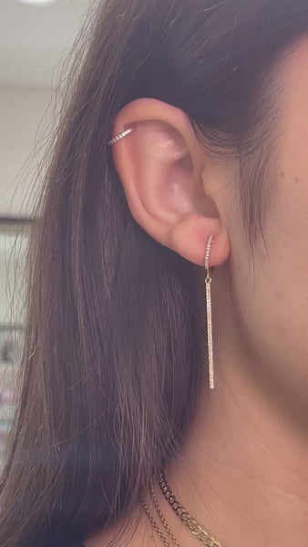 The Micropavé Diamond Huggie Dangle Bar Earrings features natural round diamonds set in 14kt yellow gold.